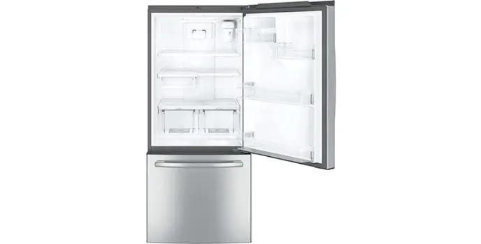 The frequent opening of refrigerators decreases internal temperatures. But GE GDE21ESKSS bottom freezer refrigerator is equipped with advanced turbo cooling technology that gradually increases the interior temperature when temperature drops-off automatically.