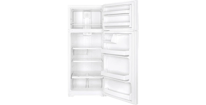 With its many convenient food storage options, GE double door refrigerator facilitates the organization and prioritization of products with its full-width two-adjustable spill-proof glass shelves designed with raised edges. It enables to store sizeable quantity food with a gallon door bin and dairy compartments. GE top-freezer refrigerator allows for an easy installation process with an optional icemaker. Having optional ice maker features enables us to determine to provide the more convenient for faster and easier cleanings through its heavy-metal construction shelves that prevent accidental spills.