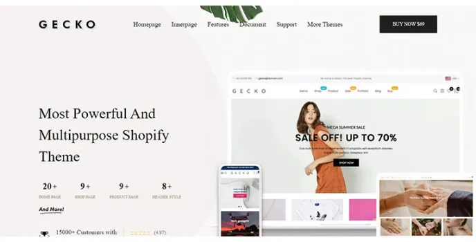 GECKO 5.0 Shopify Theme allows you to get a greater user experience with the best premium Shopify themes which provides fully responsible design templates with different style layouts. It is created as per user's needs to make sure they get what they want.