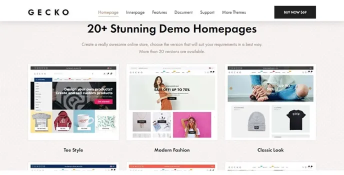GECKO 5.0 Shopify Theme helps you to explore the best Shopify themes for clothes and make an outline presence worthy by featuring eye-catching product galleries and layouts.