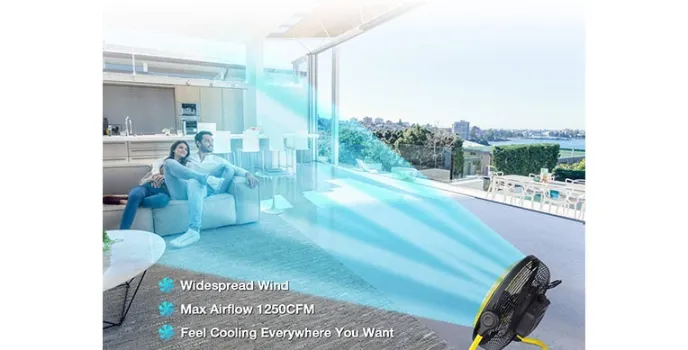 Place the battery-powered fans anywhere on the floor to get the air flowage at the 1250 CFM. The sturdy and durable metallic outer surface with the inbuilt mechanism can last up to 6 months-1 year. The rechargeable battery-powered fan runs for 20 hours and comes with a 12000 mAh powered battery.