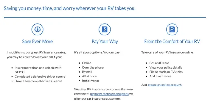 Here, GEICO RV Insurance secures and safeguards the travel trailer with a low premium monthly or annually. Similar to this, the other dash insurance policy websites like National General Insurance and Blue Sky Coverage protect you from lethal damage to the recreational vehicle.