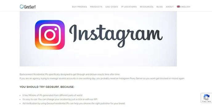 The GeoSurf Proxy Server can offer a wide variety of activities that deliver high-end business growth. The undetectable residential IPs for the clean interpretation, and millions of the validated IP addresses working for managing your Instagram account in different countries.
