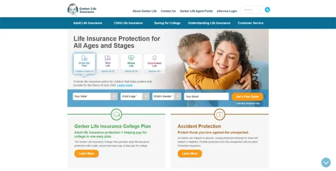 It allows the child to purchase additional life insurance coverage as an adult. People can buy this plan for their children or grandchildren with a really low premium amount. Gerber Life Insurance offers several policies, including saving for college.
