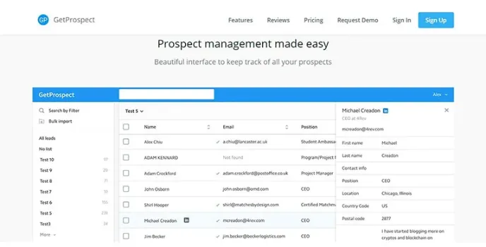 One of the best things about this software is you can use it for extracting B2B using the search tool. It eliminates the use of LinkedIn extractor for fetching business contacts. It acts as the interface to keep track of all your prospects, which enables prospects management pretty easy and very simple. One of the best features of GetProspect software is making the extracted profiles into a list which can be in the order of company name or position or client names.