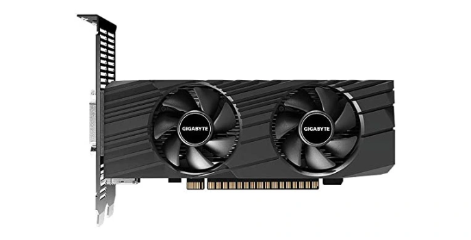 This model is a low profile product which means the usage of it is optimal and that they can fit in any computer case no matter how slim it is thanks to its miniature size. Though the functionality and the performance are similar to top branded external graphics cards, the features vary in number and flexibility to use. This product is equipped with two alternate spinning fans that operate on WINDFORCE 2X cooling system which provides more airflow to the interior component than the cards that have one fan.