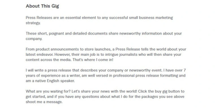 Looking for content marketing services by Fiverr, Gingerwriter is a professional PR writing service that always focuses on employing an experienced writer who knows how to research the keyword or phrases to write attractive news releases.