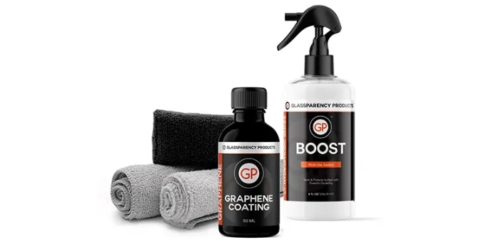 When you get to know that Glassparency Kit consists of different products utilized in the coating, you never stop yourself from ordering it. The Graphene Spray Coating for industries package includes an 80z boost spray bottle, 50ml graphene coating bottle, 320gsm edgeless microfiber towels, and a microfiber applicator.