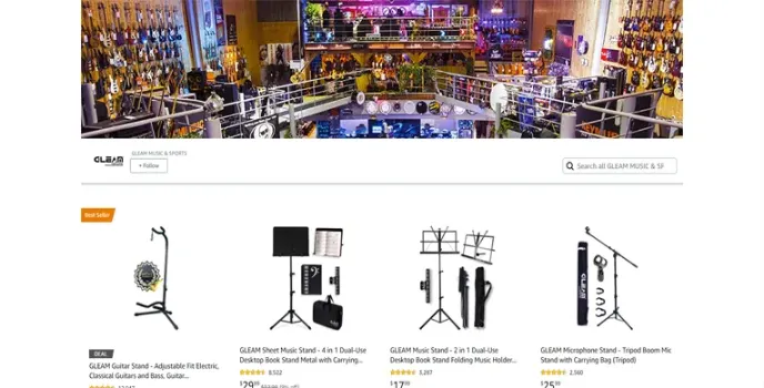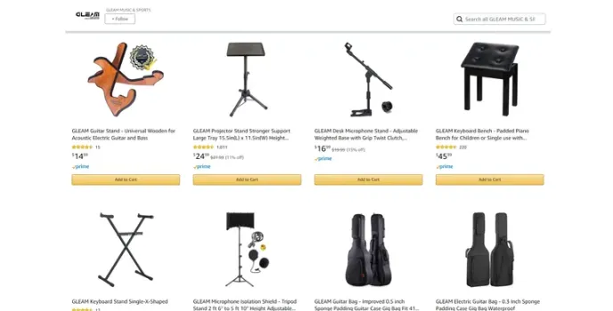 GLEAM has started selling on the Amazon.com marketplace. They primarily provide musical instruments and technology under the GLEAM brands. They now have nine products for sale, some eligible for Prime shipping. Everything is affordable at GLEAM music and sports equipment like Piano Sheet Music Stand.
