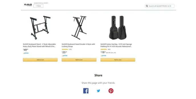 GLEAM has started selling on the Amazon.com marketplace. They primarily provide musical instruments and technology under the GLEAM brands. They now have nine products for sale, some eligible for Prime shipping. Everything is affordable at GLEAM music and sports equipment like Piano Sheet Music Stand.