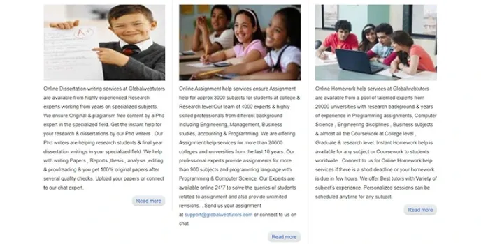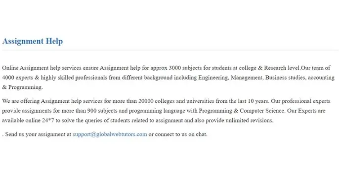 Globalwebtutors provides online homework help services. It is a reliable online tutoring service provider backed by a pool of skilled professionals from around 20k universities with research backgrounds. All the experts have years of experience in almost every course available at the college, graduate, and research level.