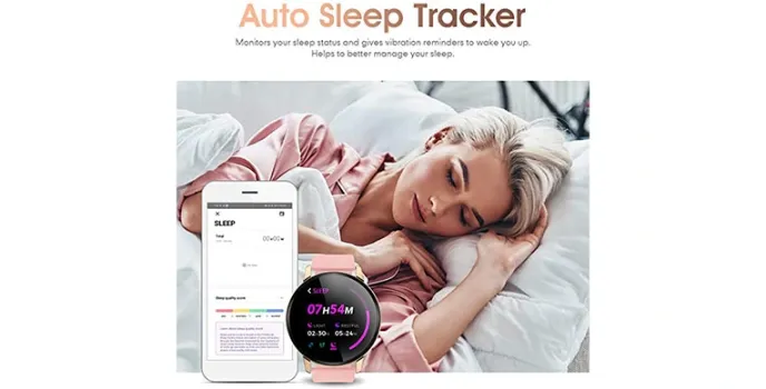 Being rated among the best smartwatches for women and the Gokoo sleep monitor watch for women comes with an auto sleep tracker, which helps monitor the sleep status and gives vibration reminders to wake up from sleep. It helps to better manage sleep to have a complete sleep cycle.