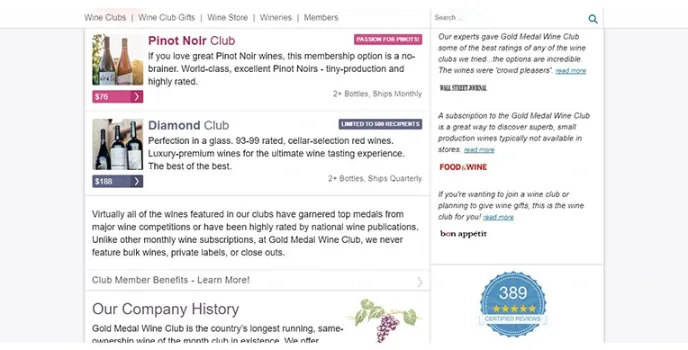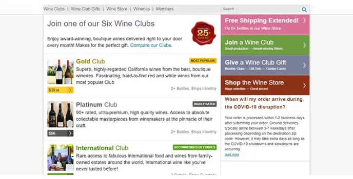 - Club for affordable and award-winning wines.