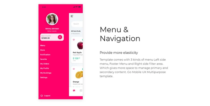 The mobile site template is with more than 50+ customizable demo presentations for comprehension and usage. The integration of the varied texture of light and dark theme create the aesthetically appealing temp for the user. And with a pre-built mobile app template, the designer saves running time and can invest in other tasks.
