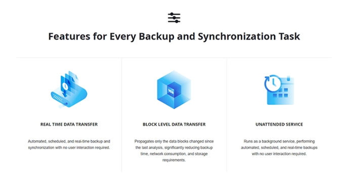 The online cloud storage platform comes with real-time and automated data replication for one-way or two-way synchronization across various destinations and media.