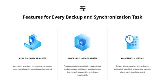 With GoodSync, users can propagate only the data blocks changed since the last analysis and help with significantly reducing back uptime, network consumption, and more.