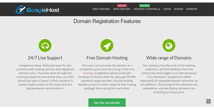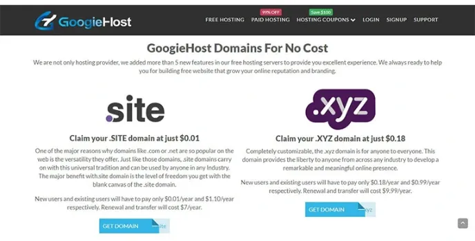 You can also use an existing domain account and start using the free hosting package without saving any time. Along with this, this web-hosting provider includes all the existing customers and gets real-time feedback from the community. Googie Host, as a platform, offers essential and requested domain extensions on its platform. The pricing provided by these free web hosting services is quite competitive, and they also provide the renewal price on display.