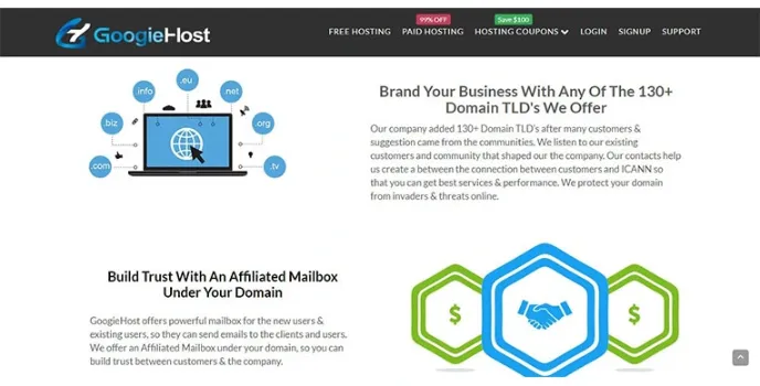 Googie Host is a web hosting provider and offers added hosting services to enhance an excellent experience. This web hosting service helps to build their websites for free and supports work on your overall reputation, branding, and website development.