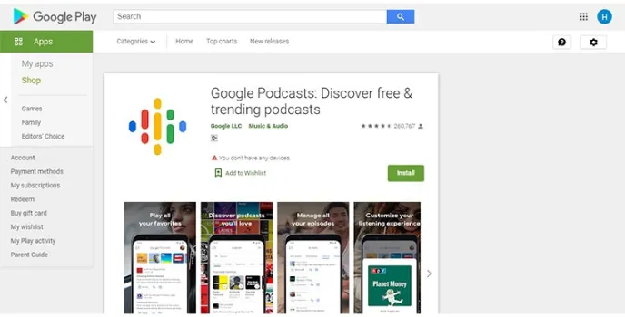 One can play the latest episodes from the favorite shows, explore the best podcasts recommendations only for you, and organize the listening activity. With google podcasts, you can browse current and trending shows in history, news, comedy, music, TV and film, business, education, technology, health and fitness, art, science, sports, and many more.