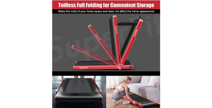 The Goplus Electric Treadmill under a desk is one of the most versatile treadmills you can find. You can fold it and keep it under your bed, and when you wake up in the morning, you can unfold it and use it again.