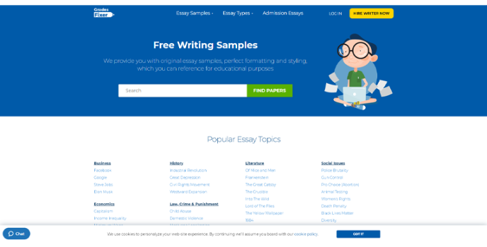 GradesFixer offers various original and genuine essay samples on various popular topics. This document plagiarism checker enables students to write with the help of these samples. The various topics include business, economics, the environment, history, literature, and many more. If there is any topic you can not find, you can hire a writer to have your essay prepared.