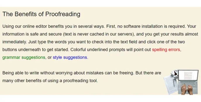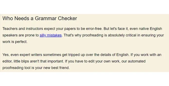 Grammar check software allows people to type or paste their data to check their grammar errors, spelling errors, and suggestions. It saves people's time because manual proofreaders take more time than Grammar checks to identify existing mistakes and provide grammar suggestions along with spelling errors suggestions.