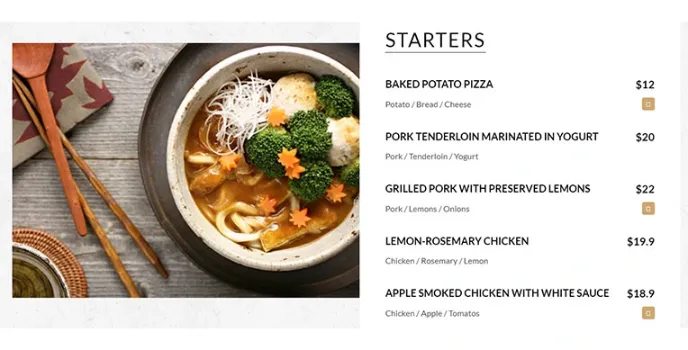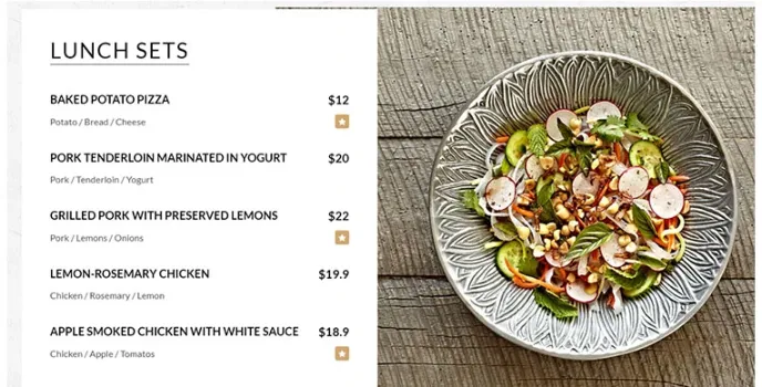 Three types of menu Formats with three menu types and different customizable choices such that you can quickly build your menu template by Grand Restaurant.