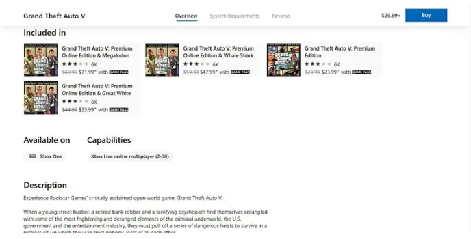 Features of Microsoft Store Grand Theft Auto V