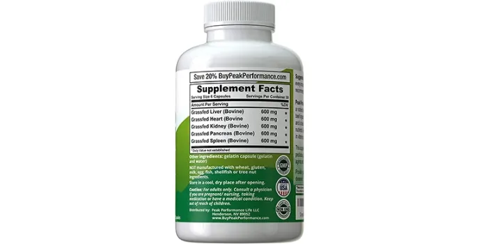 Peak Performance Grass-Fed Beef Organ Complex is good for skin health, immune system, and energy support. Sports candidates can use it to enhance their body energy with ease. Along these, it also supports heart and liver health functions.