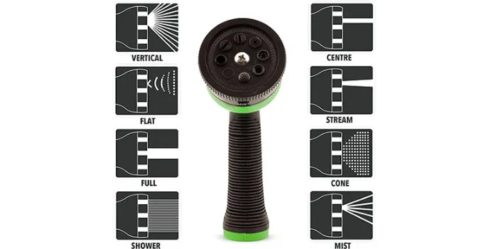 - Space-efficient garden hose with nozzle included