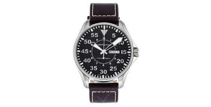 Find an iconic minimalist chronograph through digital platforms. The abundance of Watches collection makes it a bit daunting to pick the reliable and waterproof one. Relax! Go with the best Hamilton Khaki Black Dial Pilot Watch is a high-quality constructed and 200 meters in-depth water-resistance feature brand that ensures wear in daily life. It provides a luxury yet elegant accessory on your wrist while going to the office or college.
