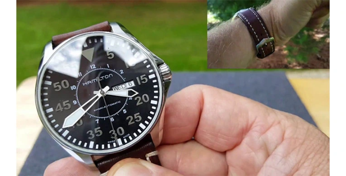 The Hamilton Khaki Black Dial Pilot Aviator Watch has similar features to two other brands, making you look bold and confident on your important day. They are IWC Schaffhausen Pilot’s Mark XVIII Heritage and Breitling Aviator 8 Curtiss Warhawk Automatic with self-winding to scratch-proof material.