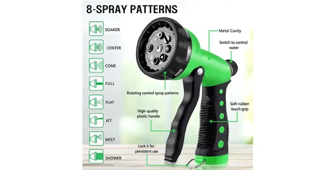 The hose is said to have a 30% longer life compared to the other traditional hoses. It also works as an excellent gift for your friends and family. The product comes with various products; a five-piece gardening set, an expandable 25-foot garden hose, a metal garden hose nozzle, a storage bag, spare rubber seals, and a user manual directions for using the products. The thing that sets Hblife hoses apart from other companies like Aterod and Knoikos is that it comes with a 100% money-back guarantee within 30 days and one year of warranty.