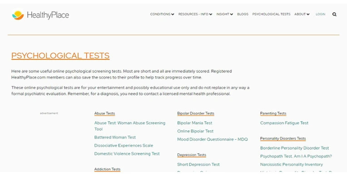 HealthyPlace - Online Tests For Formal Psychiatric Evaluation