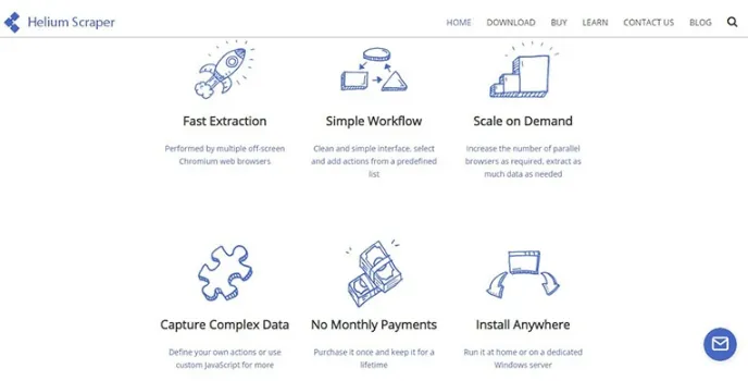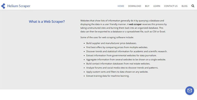 Helium Scraper is one of the go-to web scraping tools that make the data extraction procedure easy to extract from any website. This best web scraping tool is easy to use but powerful and efficient Web Scraper. It can be set up to extract anything from the web virtually that you point to with your mouse. It helps you extract patterned data from any website with just a few clicks with an intuitive interface. It can extract as well as manipulate any complex information with the help of JavaScript and SQL.