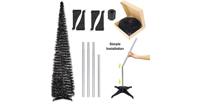 This black Christmas tree has been designed with high-quality PVC and metal to make for better durability, longer life span, which makes it a value for money product similar to the ones from Yuqi.