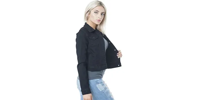 Suppose you're looking for a black Denim jacket for girls that you can opt for the Hollywood star fashion black denim jacket for girls with cups with superb features that offer you an inch of a shoulder-length jacket. This denim jacket is also suitable for all skin types. The jacket also has a front button downwards with the Denim jeans for adults.