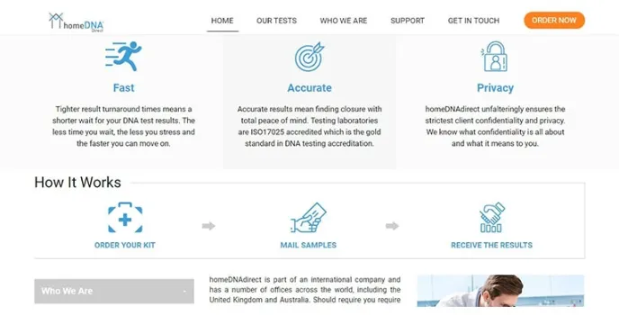 HomeDNADirect only utilizes laboratories that follow the highest levels of international standards. The staff is professional, qualified as well as committed. If you are searching for a credible service, then this is definitely the place for you.