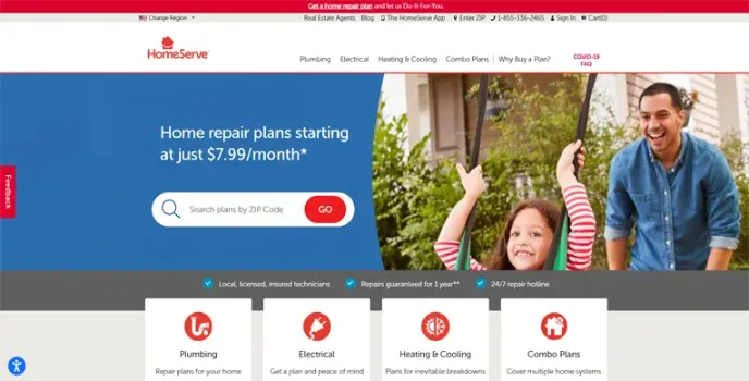 Homeserve has its specialty in 3 major sections, plumbing, electricals, heating, and cooling. The company has the home warranty for the condos for these services individually. Additionally, it also has combo plans which you can sign up for if you are facing more than one house issue and want everything to be repaired.