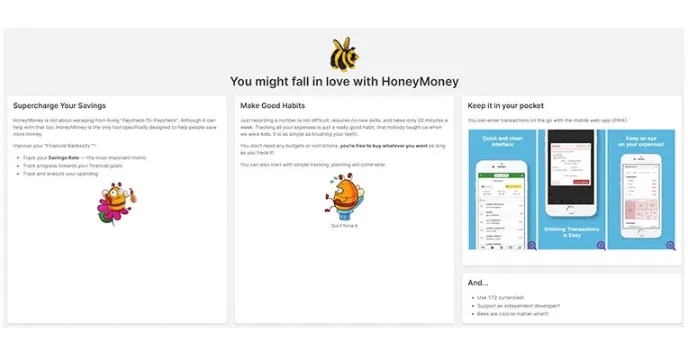 Honey Money peer-to-peer lending for investors website helps provide safe, secure, and complete control over your finances. It helps increase the overall awareness about your money habits, and the tracking is manual by design. You can view your transactions easily by planning your regular transactions and then only confirming actual amounts.