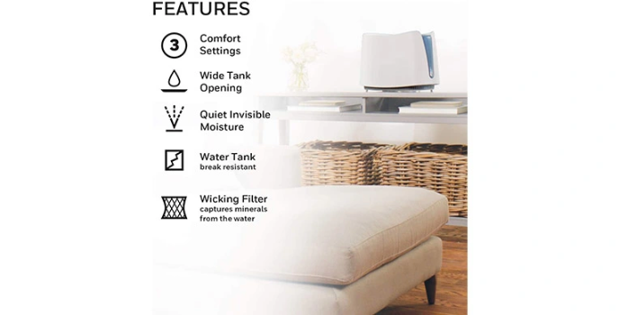 There are certain features of this Humidifier that will impress you. It has features like UV technology to kill bacteria. This Humidifier is easy to fill, clean, and carry, and it also helps to temporarily relieve congestion. It has multiple features that let it act as one of the best humidifiers.