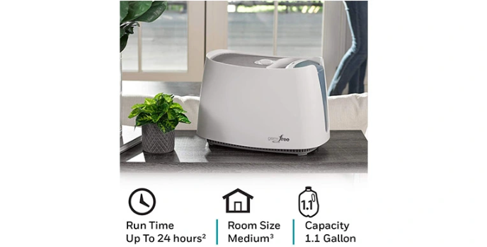 This is a humidifier that falls under the category of cool mist humidifiers. It is one of the most used and popular humidifiers and includes a refillable water tank as well. It adjusts the temperature of the room and makes it comfortable for people who suffer from allergies and other problems due to the loss of moisture.