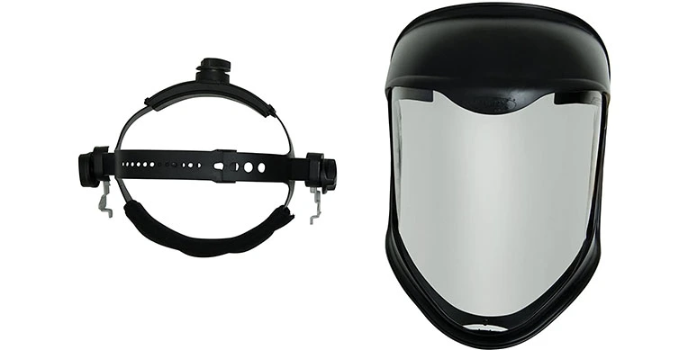 It provides excellent optics to increase visibility, clear polycarbonate visor with anti-fog/hard coat. You can work in any situation. It is light in weight, balanced. It weighs 1.3 pounds. Its ergonomic design helps for its extended use. These features can be seen in Lincoln face shields. There will be no inconvenience wearing this shield because of its ratcheting headgear. It has highly adjustable headgear tilts, visor nearer or farther from face for preference and application. It can be tilted in 2,784 total possible positions. It is clear uncoated, clear anti fog/anti scratch. One can breathe without any problem wearing this mask. It has a washable headband. It is easily removable. These comfortable features are similar to the ones present in sellstrom face shields. It has to be worn with safety eyewear or goggles. It is 100% dielectric. It comes in black matte colour. It does not require any batteries. One can work with this shield on without any difficulty. It protects your face during work from any kind of harmful outbreaks.