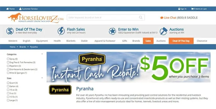 For more than 40 years, the Pyranha Horseloverz platform provided pest control solutions for livestock and residential, including the ready-to-use and insecticide products to the misting system. It is also committed to providing the best quality horseback products to the customers with the most advanced technology and useful to the clients. This platform offers a large selection of riding products from various reputed brands through its simple navigation system, including the Pyranha products.