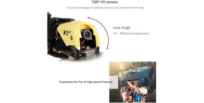 720p HD camera quality imagery gets displayed over the FPV technology, and wide-angle adjustment from 8-45 degrees provides a professional view.