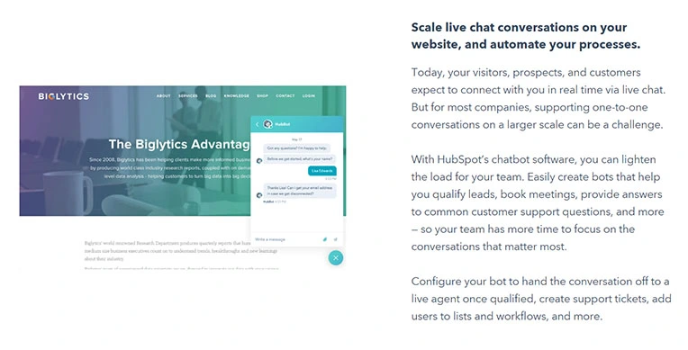 Hubspot - Best Chatbot For Marketing, Sales and Service