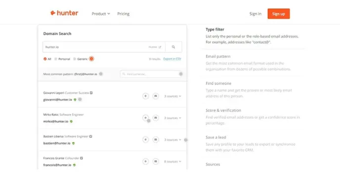 Hunter - Provides Accurate List Of Email Addresses Of Targeted Domains