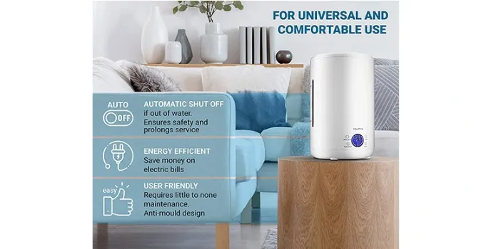 Hupro Cool Mist Humidifier is one of the best humidifiers in the market area. It helps to bloom indoor gardens to prolong the life of musical instruments. It improves general mental as well as physical health. Also, adding a few drops of essential oil will fill the house with a wonderful aroma that will have a healing effect on mind and make you feel relaxed.