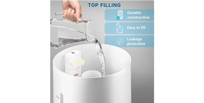 Hupro Cool Mist Humidifier has the top filling construction just like Bubos Warm and Cool Mist Humidifier which makes it easy to fill yet clean. Because of top filling, it requires minimum maintenance, which also protects the humidifier from leakage. You just have to remove the lid and pour water into it. It has a constant humidity mode including an aroma oil tray just like Honeywell Germ-Free Cool Mist Humidifier to soothe your body as well as mind inside out. It is ultra-quiet with three-layer mist levels to keep your house fresh. It also operates for 36 hours in a go.