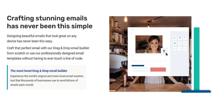 Another great thing about iContact is that it comes with an intuitive landing page tool, which can be accessed and applied with the drag and drop builder. It helps use convenient building blocks to create responsive landing pages.